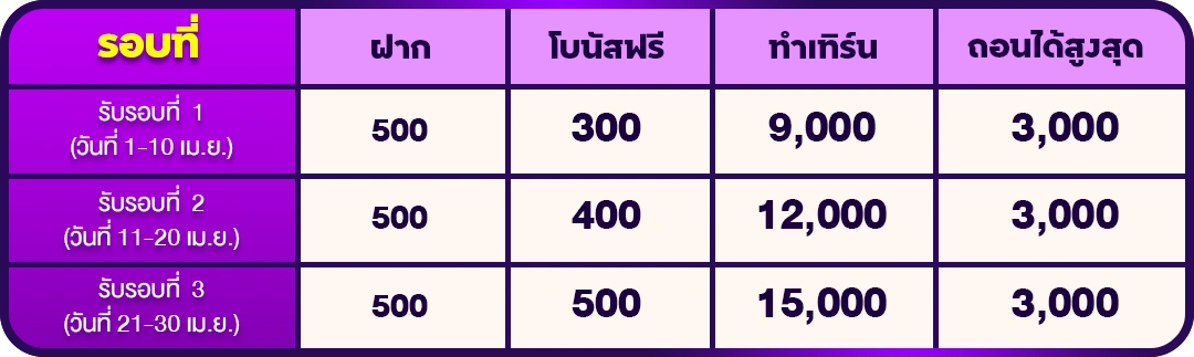 ✅(วันที่ 1-10 เม.ย.) ฝาก 500 ฟรี 300
